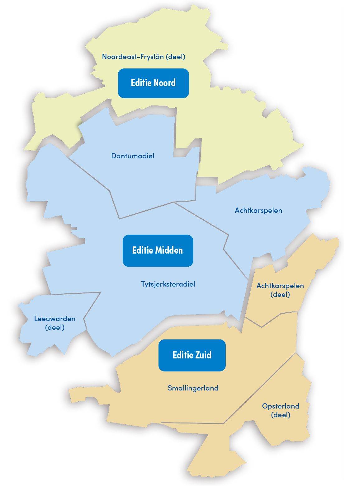 Gemeente Smallingerland, Gemeente Achtkarspelen (deel), Gemeente Opsterland (deel).